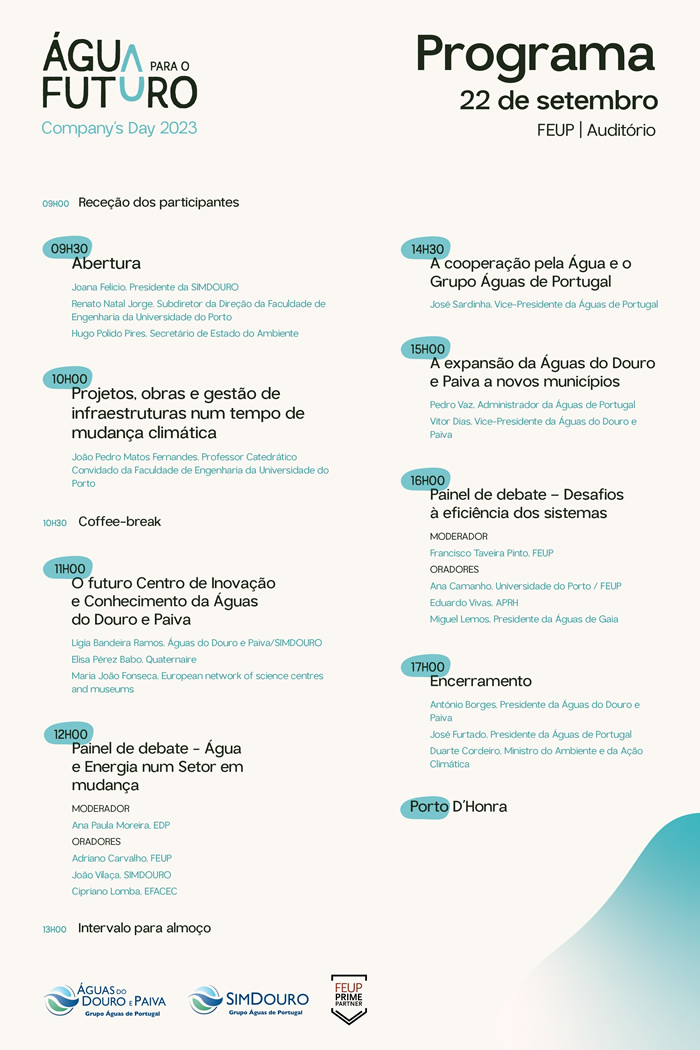 Numa parceria com a Faculdade de Engenharia da Universidade do Porto, a Águas do Douro e Paiva e SIMDOURO vão realizar, no dia 22 de setembro, a nova edição do Company’s Day.